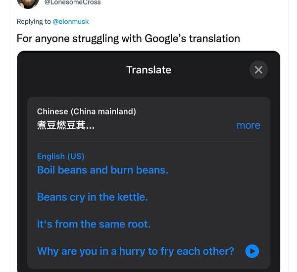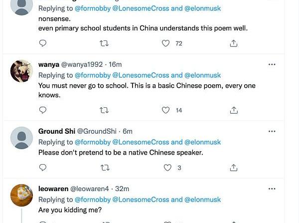我更好奇的则是,这样一首距今至少已经1500年的中国古诗,在被马斯克原封不动用中文发出来以后,该怎么用英文把这首诗翻译给不懂中文的人看。