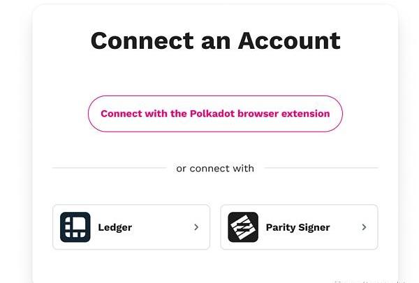 1.通过Polkadot-JS浏览器扩展程序、Ledger设备或ParitySigner连接你的帐户。