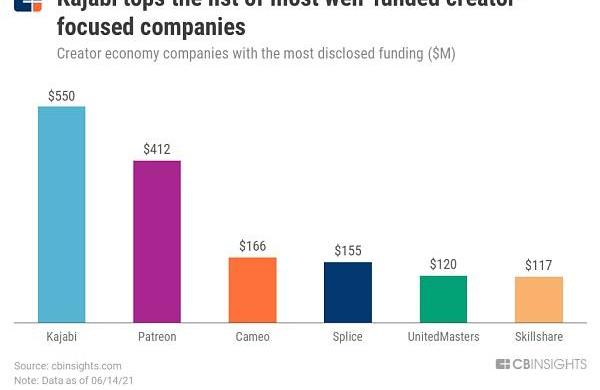 2021年上半年,以创作者为中心的公司获得了13亿美元融资,几乎是2020年一整年的三倍。