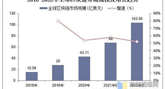 全球区块链市场规模保持稳定增长。据IDC数据显示,2020年全球区块链市场规模达43.11亿美元,同比增长53.96%,预计2022有望突破100亿美元。