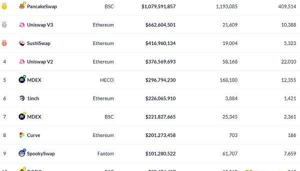 过去24小时去中心化交易所的交易量数据来源:Debank