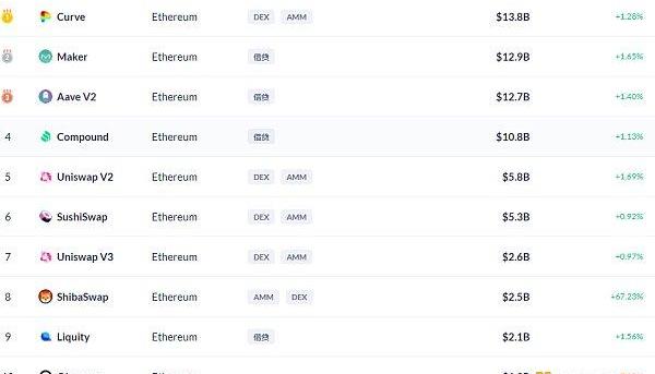 DeFi项目锁定资产前十排名及锁仓量,数据来源:Debank