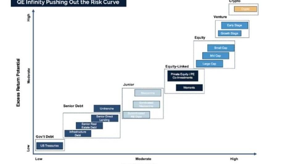 这使人们进一步偏离了风险曲线,正如我们过去所说,「无限的量化宽松政策将您的储蓄账户变成了支票账户,将债券市场变成了储蓄账户,将股票市场变成了债券市场,风险投资市场进入股票市场,而这些又导致加密市场成为新的风险投资市场。」