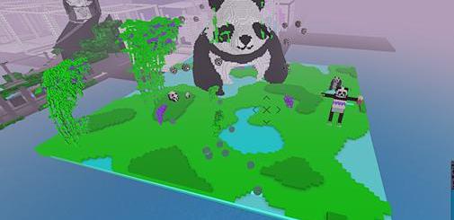 一个海上熊猫馆。游乐园不远处,即是熊猫馆。远看有一个巨型熊猫蹲坐海边,身旁几只玩耍的小熊猫,青草、修竹,甚是惬意。熊猫馆链接:https://www.cryptovoxels.com/play?coords=N@586W,236N