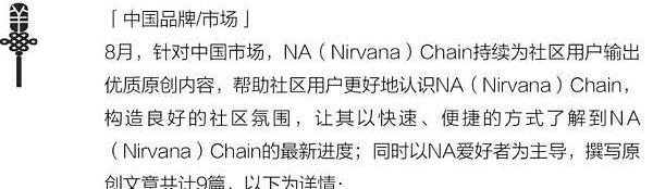 本文一共由三大部分组成,分别是8月NAChain技术/产品进度、8月全球社区建设、8月品牌/市场进展。NAChain月报每月发布,分享NAChain的最新社区动态、技术开发、市场进度情况。感谢各位对NAChain的关注与支持,以下为NAChain的最新详细进展。