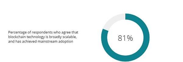 同意区块链技术具有广泛可扩展性并将被主流大众采用的受访者百分比为81%。