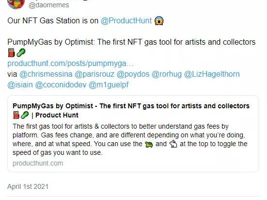 NFTGasStation?—该网站由tech0ptimist创建,可帮助用户比较以太坊上最流行的NFT平台目前的ETHgas价格
