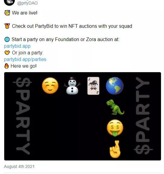 PartyBid?—由PartyDAO创建,这是一个新的去中心化产品,用于对NFT进行团体投标。