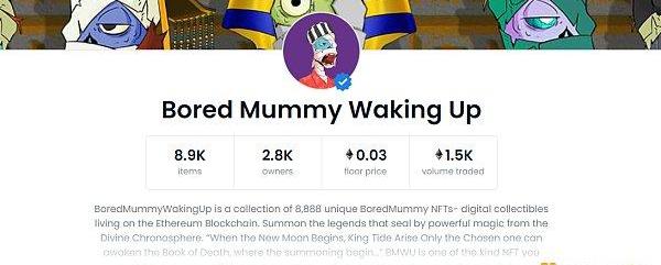 「无聊的木乃伊」,因为出色的设计,融合了各个国家的传统元素而做成的木乃伊NFT系列,在盲盒开盒前有超过2700个拥有者。