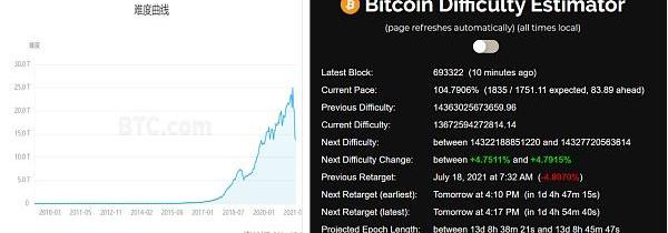 截止本报告发表日,比特币全网算力已从回升至118EH/s,最高到了120EH/s以上。全网的难度预计将在7月31日迎来第一次上调,预估上调幅度为4.7%左右。
