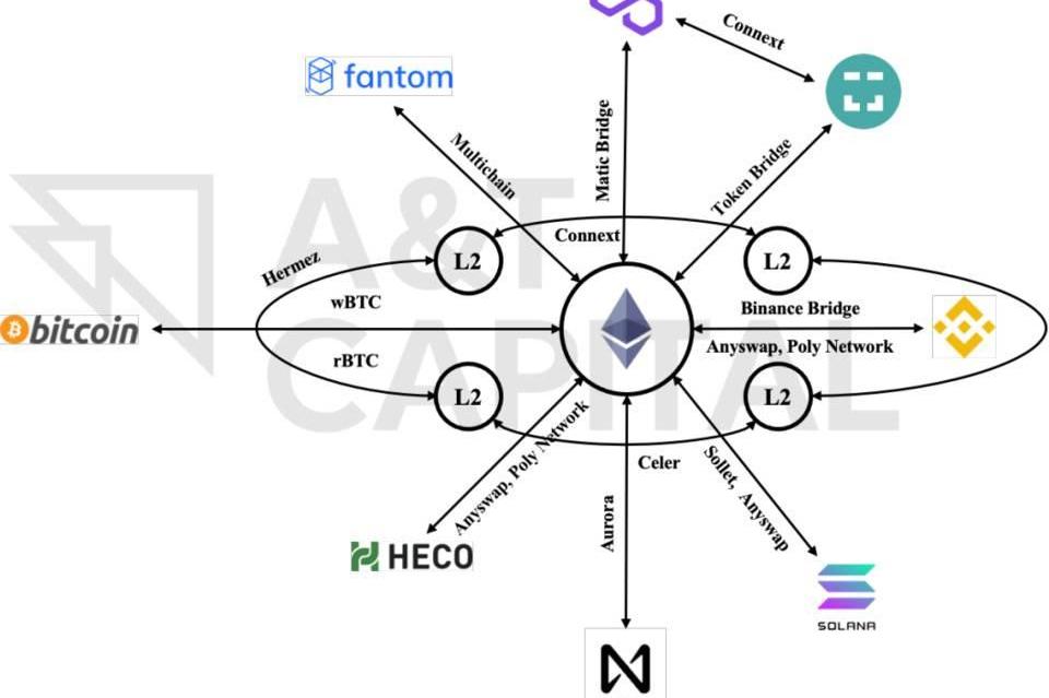 但是,演化仍在继续:一方面,以太坊底层性能不足,交易缓慢、Gas费用高昂,诸多新兴公链在不可能三角上进行了相应的取舍,对其进行了补充和扩展;另一方面,这些公链之间互不连通,从而导致它们成为了一个个割裂的价值小岛——亟需一座座桥梁将它们连通起来,释放整个加密资产流动性和可互操作性的最大潜力。