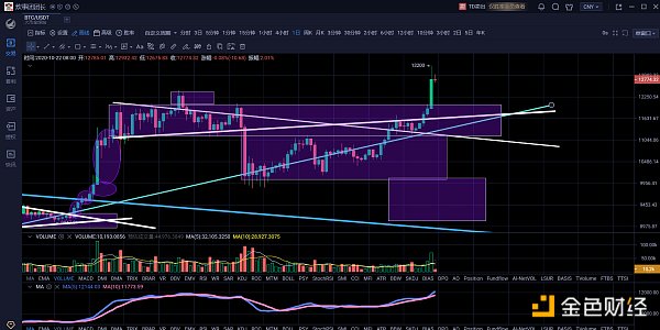 经历了近三周的上涨,周K线上目前已经运行到沙僧位处。K线西游战法对沙僧位K线的解释是沙僧位类似人生,更多的震荡将在沙僧位K线上发生。因此当前短线快速冲破日线箱体走出新高后的比特币,个人更多的是看能够出现周线级别的调整。因此如果在最近几个交易日中比特币不能走出新高,那么围绕12000-12700美金区间的空头回补势必要从此展开。