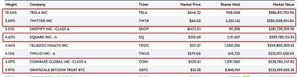此外,ARKK中同样包含特斯拉、Square、Coinbase等。