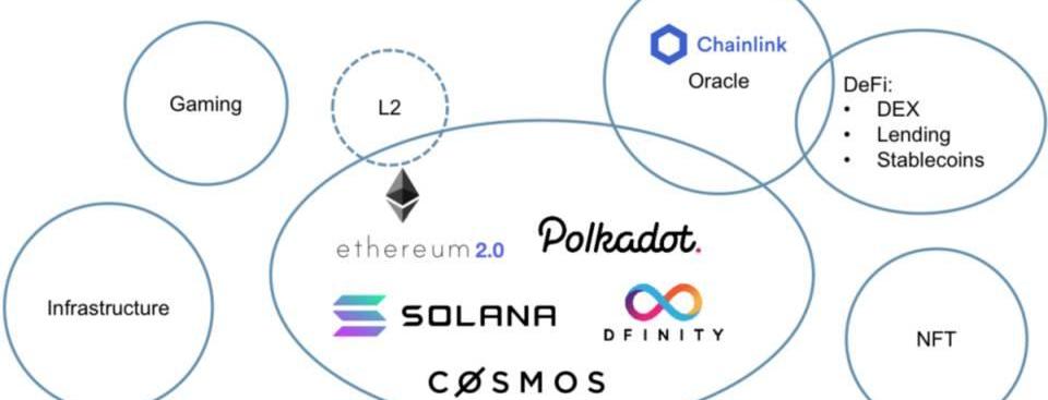 公链为创新提供了基础设施。像预言机这样的中间层也可能演变为链和应用程序的生态系统。上图圆圈表示的如DeFi、NFT和游戏也有它们自己的微生态系统。拓宽视野,形成一个行业拼图。寻找拥有「真实用户」的生态。