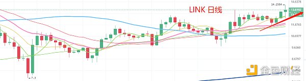 LINK:从拉升手法就得知该币的庄家一直在,只有BTC不倒,LINK 这种带成交量带波动率的一直可以波段,昨天又从12.6拉升到14,建议一直关注,低吸为主。短期支撑位 12.9 附近。