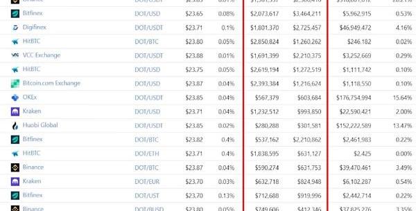 市场深度告诉你需要多少资金才能在任何给定的加密货币交易所推动加密货币的价格上涨或下跌。这可以在市场选项卡下的Coingecko或CoinMarketCap上轻松查看。将价格推高或推低2%所需的资金越多,加密货币的市场深度就越大。