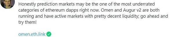 在这个过程中,去中心化预测市场当前结构的一个关键补充,将是匿名评论和讨论的能力,使这些平台真正具有社交性。同样,社区中的知名人士也引用了这一点,而且很可能已经在路线图上了。