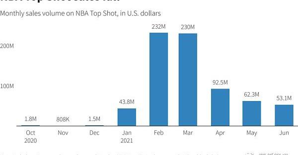从过去几个月最受欢迎的NBATopShot的销售情况看,4月开始进入下降通道,当然,这跟NFT的热点发生变化也有关系。