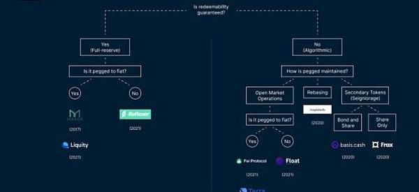 虽然不同的稳定币协议已经有很多迭代,但它们中的大多数都具有相似的特性。这是我常用的分类框架,用于思考去中心化稳定币的广阔领域。请注意,某些技术参数和机制在同一类别的协议之间有所不同。