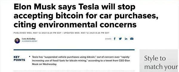 但加密货币的真正下滑趋势始于5月初,当时埃隆·马斯克(ElonMusk)在Twitter上表示,特斯拉将不再接受比特币作为支付方式。