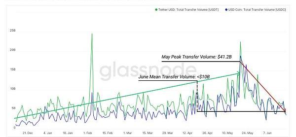 稳定币转账已经结束了长期需求和交易量增长的阶段。USDT转账历来都是以太坊gas消耗量排名前十的活动,因为各种大大小小的持币者都普遍使用USDT在交易所之间转移资产,且不用承担价格波动风险。