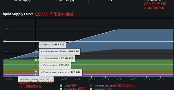 尽管有固定的1000万代币总供应量,COMP的流动通胀率(即预计12个月之后的COMP供应量除以当前的供应量)为30.57%。