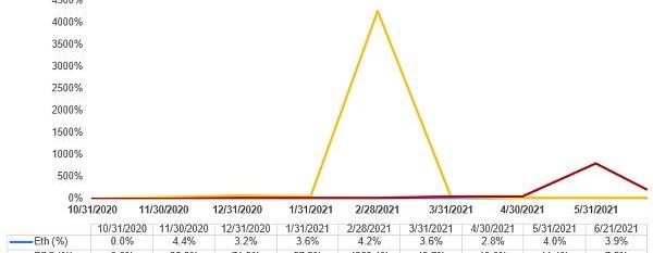 虽然就2021六月份为止,BSC的总钱包数量是Ploygon的十倍,但是自2021年4月以来,Polygon的唯一钱包地址总数的环比增长超过了Eth和BSC。近几个月来,全网唯一钱包地址总数的环比增长一直在下降,但仍然是正数,Polygon的增长率最高,为205.3%,而Eth为3.9%,BSC为7.5%。