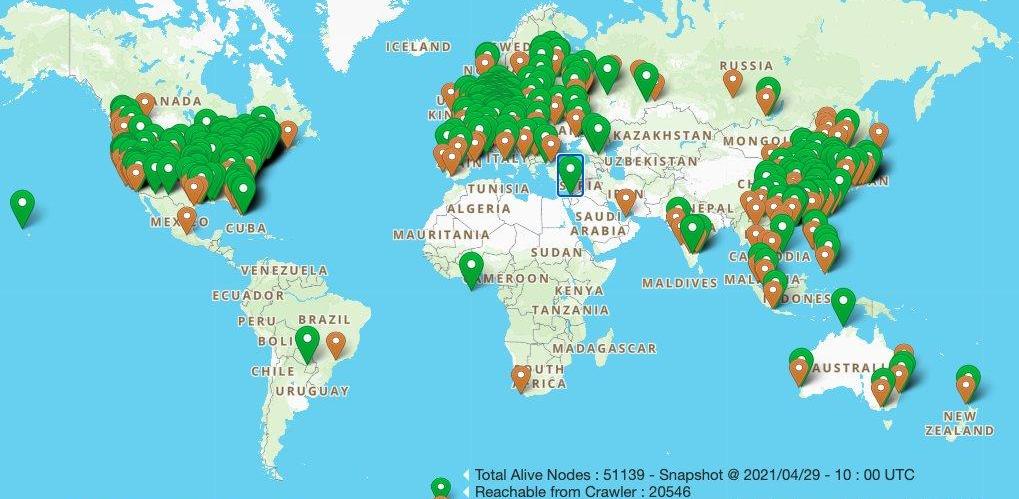 Swarm当前处于测试网尾期,由于测试网有100万个BZZ空投奖励,吸引到众多矿工参与。截止目前Swarm测试活跃节点数超过27万个,节点在全球广泛分布。测试网矿工创建节点后获得不同分值的支票,主网阶段可以用于兑换BZZ。主网上线时间不确定。