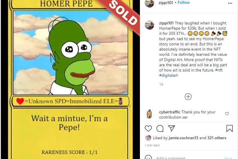 2021年初,著名动画《瑞克和莫蒂》的创作者之一JustinRoiland在NiftyGateway上发售其NFT作品;当时NBATopShot的日成交额已达到100万美元。