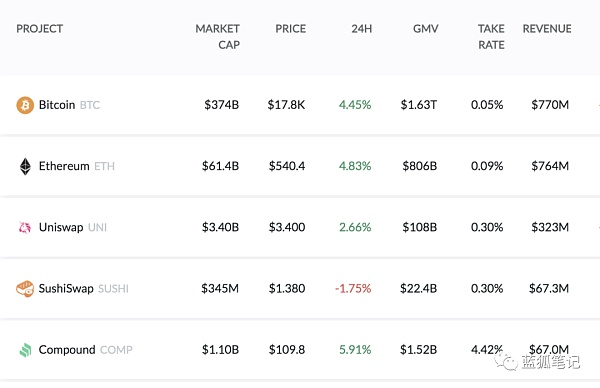 以太坊的交易费用在DeFi推动下,逐渐形成对其他协议和项目的碾压之势。目前以太坊年化捕获费用高达7.6亿美元,仅次于比特币的7.7亿美元。此外,费用靠前的协议和项目基本上都是DeFi领域的。随着DeFi的发展,这个趋势只会增强。而随着EIP-1559提案的实施,这意味着ETH将有机会捕获以太坊的费用收益。它会减少ETH的通胀率,甚至在一定临界点带来通缩的可能性。