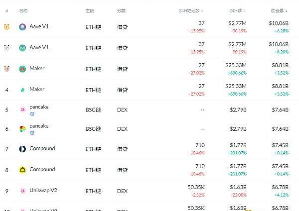 锁仓量排名前十的借贷平台排名来源:DeFibox