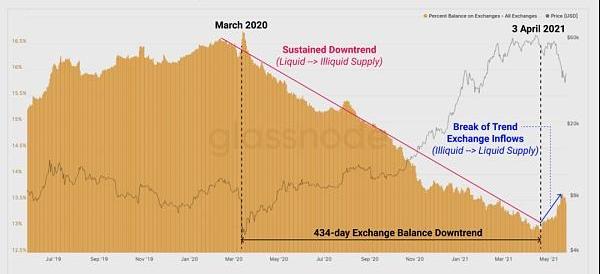 交易所的余额增加,大量的加密货币卖出的交易行为,现在必须重新积累。