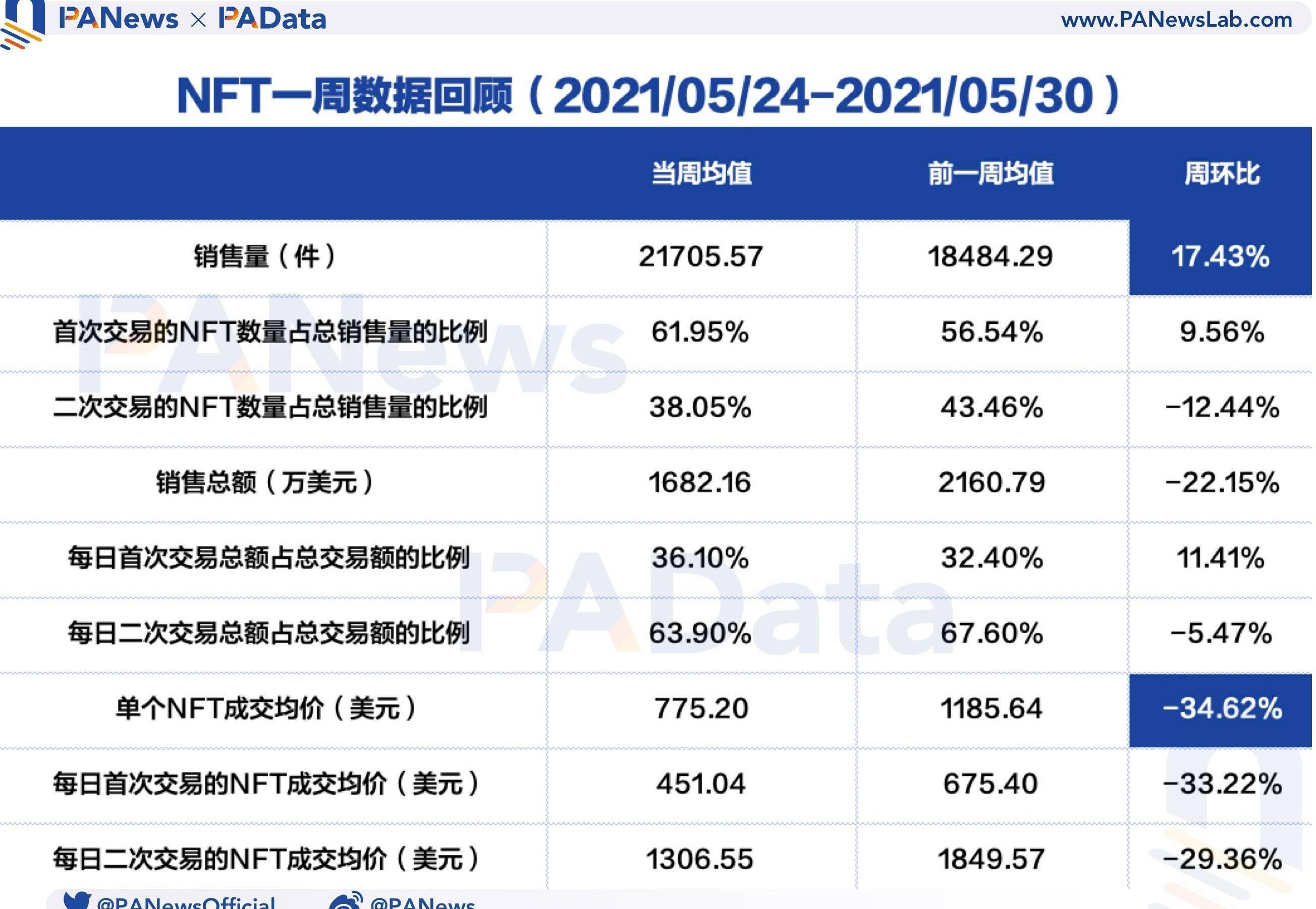 NFT日均销售量周环比增长17.43%,首次交易市场更活跃
