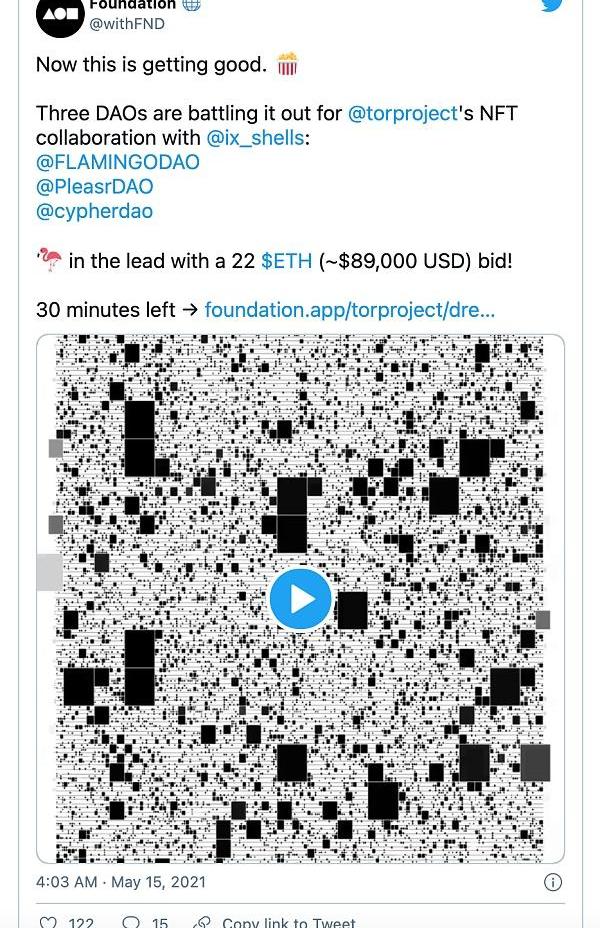 DAO购买NFT作为投资:PleasrDAO?近期以500ETH价格购买了Tor的NFT。该DAO最初创建是为了购买艺术家pplpleasr的作品。FlamingoDAO、Whaleshark,以及其它很多DAO也都进行了NFT投资。