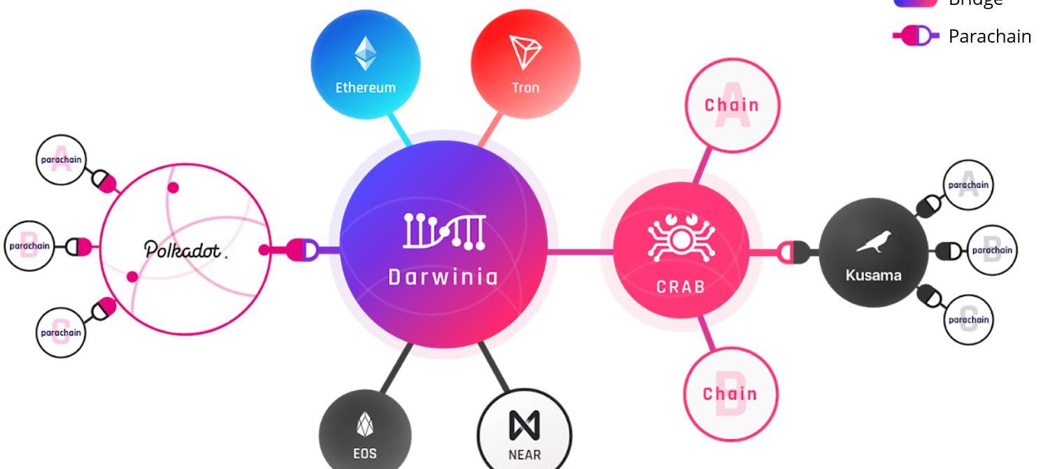 Kusama:DarwiniaCrab网络是Darwinia的金丝雀网络。它是Polkadot内第一个跨链NFT区块链。Crab将参与Kusama平行链插槽拍卖,众筹参与者将获得CRING、NFT和其他奖励。