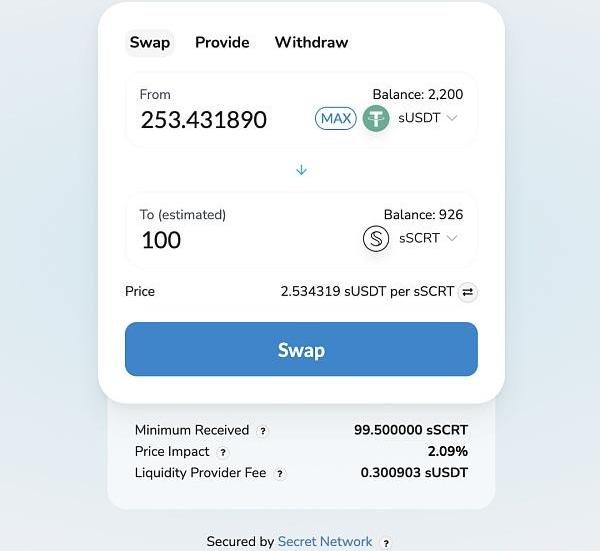 听起来是不是很棒!但是,这对解决MEV问题有什么帮助?以基于SecretNetwork的平台SecretSwap为例。SecretSwap是一个跨链自动做市商。然而,不同于其它自动做市商,SecretSwap平台上所有交易的输入、输出和状态都经过加密,避免向外界泄漏任何交易信息。这样可以有效防止矿工根据交易费对区块内的交易进行重新排序,还可以防范来自做恶者的抢跑攻击。