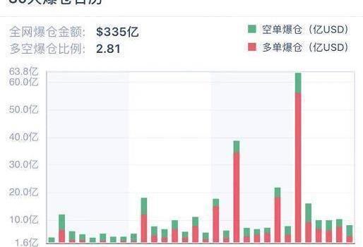 5月19日,比特币日内最大跌幅达逾33%,全网共爆仓超63亿美元,其中,多单爆仓占比达到88%,比特币爆仓近27亿美元,以太坊爆仓超16亿美元。