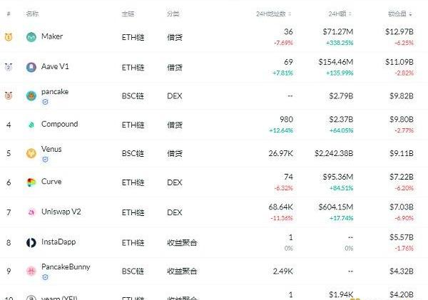 DeFi项目锁定资产前十排名及锁仓量,数据来源:Debank
