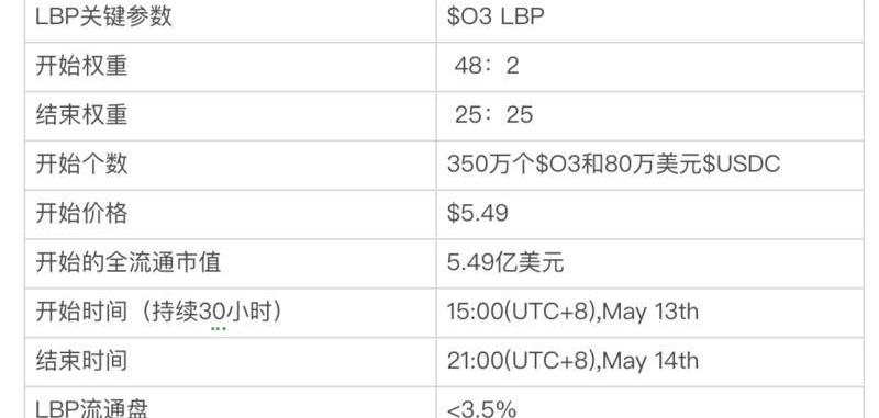 在LBP开始时,我们将投入350万枚O3和80万枚USDC,起始价5.49美元/枚。详情请看?