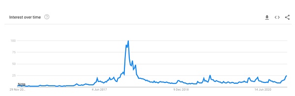 自2015年起,“比特币”一词的谷歌搜索趋势变化