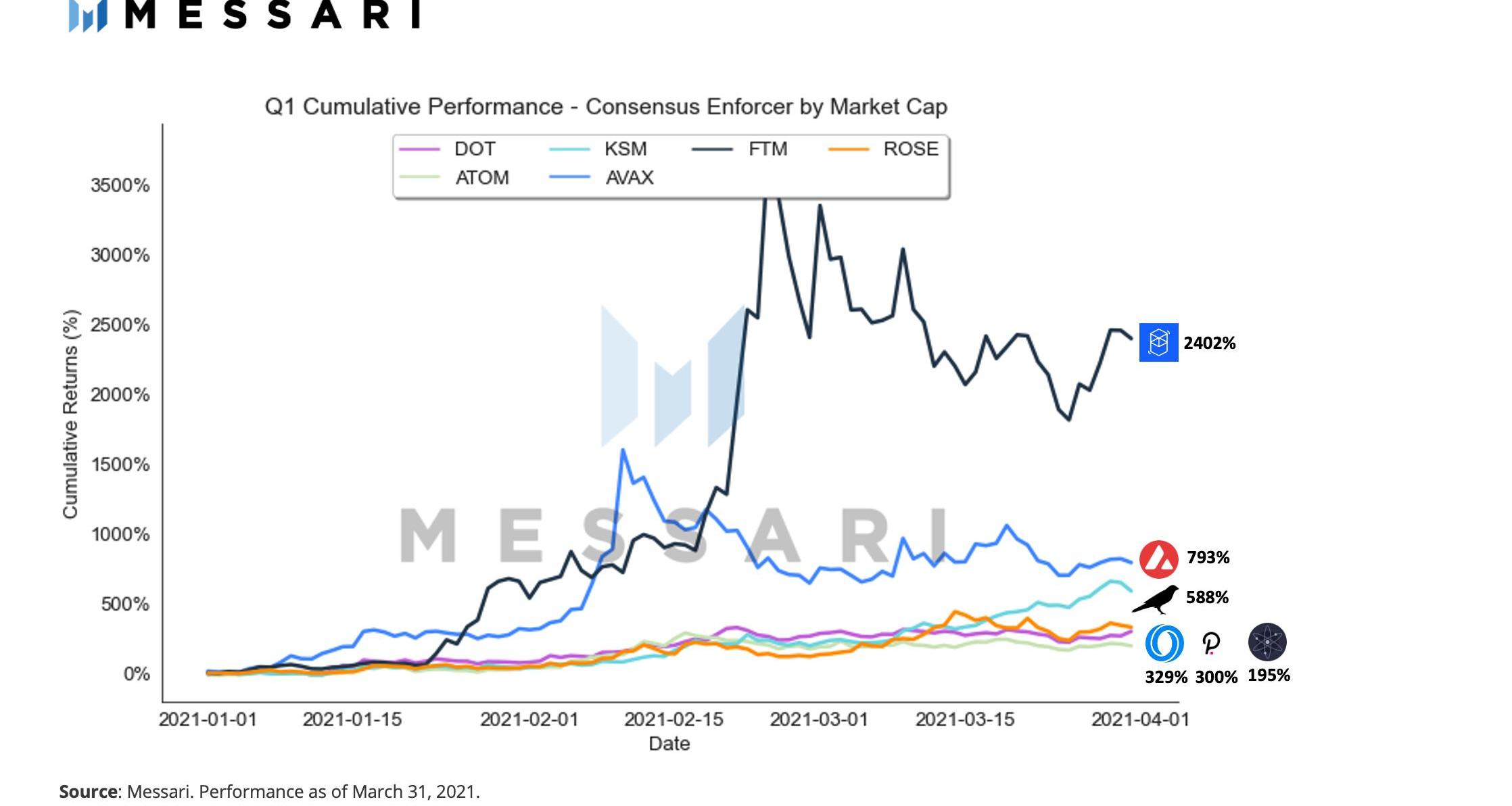 Polkadot和Cosmos是两个最古老且知名的模块化网络,但在第一季度的价格表现突出的是Fantom和Avalanche。