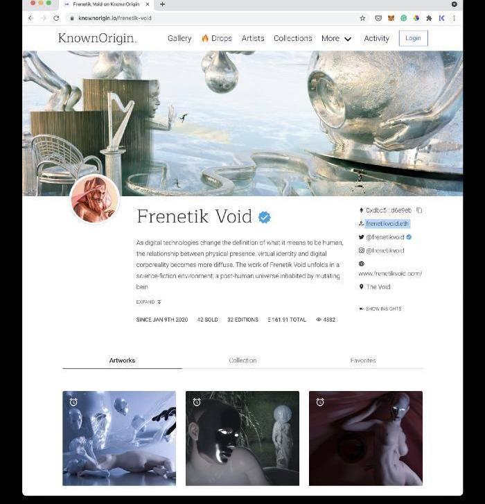 但在KnownOrigin平台上显示的ENS名也能在OpenSea上显示出来。换句话说,ENS名是可移植的用户名。