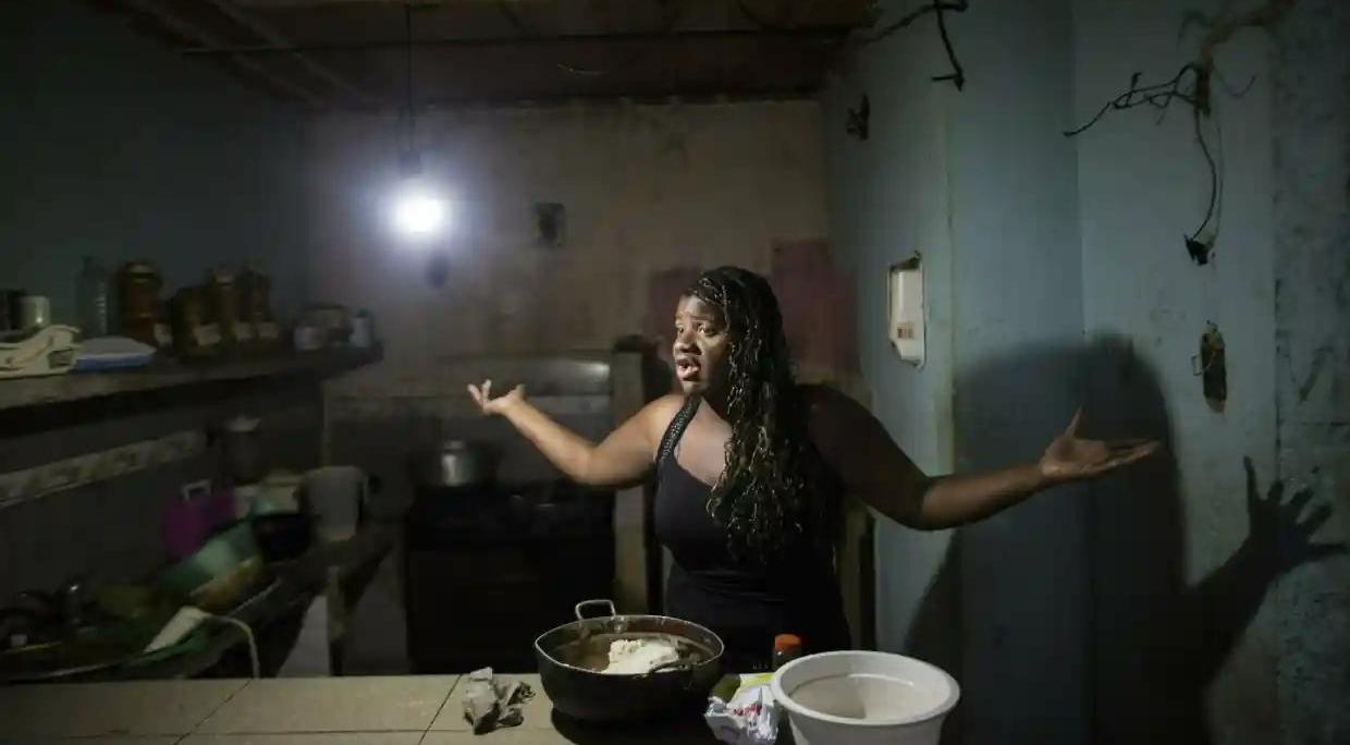2019年2月,委内瑞拉加拉加斯,DugleidiSalcedo在Petare贫民窟的厨房里为她的三个儿子准备arepas,向邻居抱怨食品价格太贵。摄影师:RodrigoAbd/AP