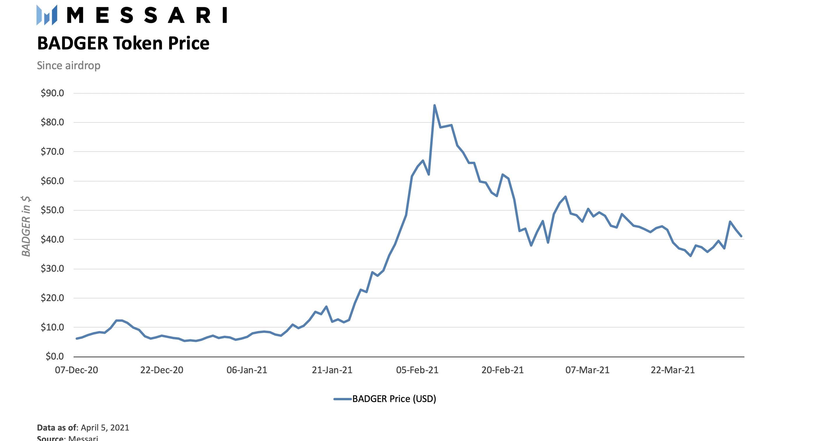 就目前而言,做长期收入预测还为时过早,但从推出到3月31日,该协议总共赚了大约670万美元。按照3000万美元的年化费用,在完全稀释的BADGER代币基础上,价格与销售比率约为28倍。凭借这一数据,Badger成功跻身于相对成熟的协议之列,如MakerDAO。另外,正如结论中所讨论的,这个新的DAO有更多的上升潜力,但风险也更高。