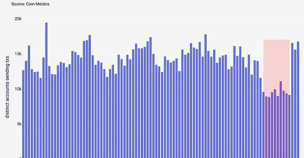 通常来说,每小时大约会有15,000个帐户创建交易,但在停机期间数量下降到了大约9,000个。仅仅减少了16%的节点,就使活跃的网络参与者数量减少了40%!