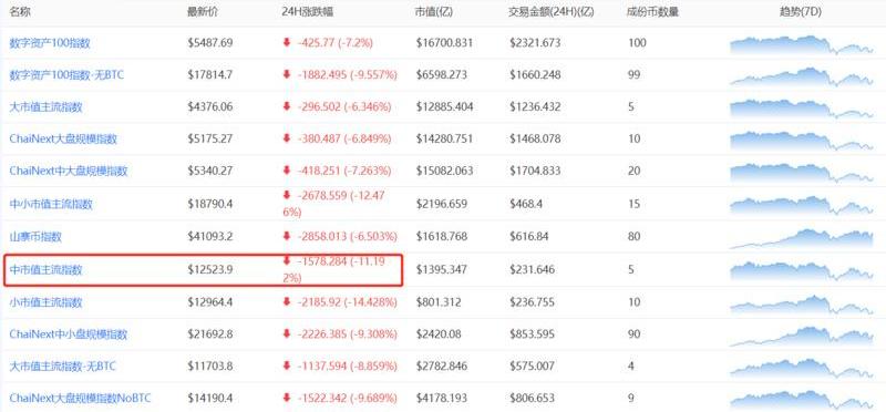 7.今日加密市场主流加密指数普跌,其中中市值主流币跌幅最大,资金出逃迹象明显,市场抛压严重。