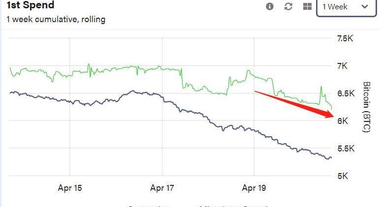 3.BTC挖矿算力骤降,矿工挖矿产出比特币也骤减,BTC抛售量也呈下降趋势,BTC矿工抛压整体上仍然相对较低。