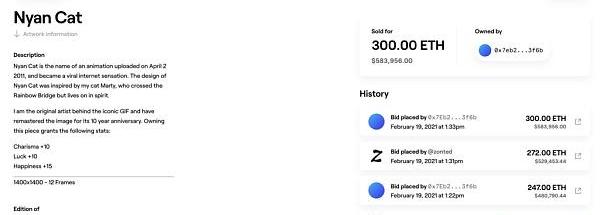 Beeple以6900万美元售出拼贴图像文件,同时NyanCat的创建者以60万美元的价格卖出了这款标志性的gif,Grimes以600万美元的价格出售了一系列短片,莱昂国王发行了一张新专辑并以NFT的形式发行了音乐会门票。