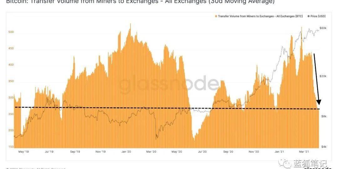 BTC每天有900个新增,但矿工进入4月份之后,卖出意愿降低。如下图: