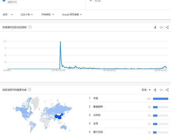 根据Google热词趋势的记录,经历过2017年底短暂的高光时刻,进入2018年之后,Cryptokitties的热度很快一落千丈,在接下来的两年时间中始终没有明显起色,直到2021年3月才隐约呈现抬头的趋势,但热度充其量也只有全盛期的10%。